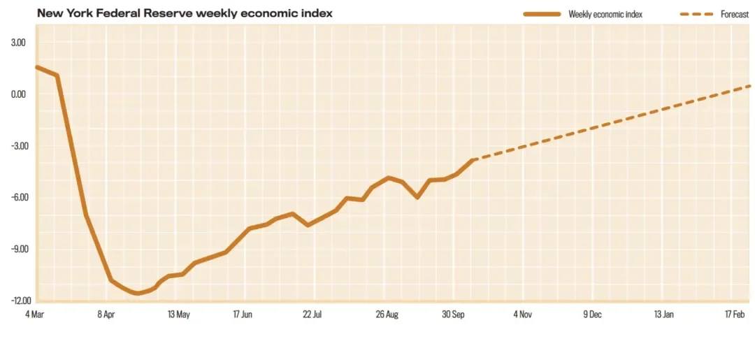 The need for Government support continues as the impacts of the pandemic show no sign of slowing, and predictions for economies to rebound in the near term are now being questioned as Governments are tackling the second wave of the pandemic and being forced into tiered lockdowns depending on regional severity. The role of central banks in the support of economies mirrors the actions taken following the 2007 financial crisis, with quantitative easing (QE) programs employed to enable central banks to purchase Government debt, to keep the cost of government borrowing low. In short, the QE approach helps stabilize economies and keeps interest rates down. The economic recovery in the US has been more promising as GDP reflected significant growth from the reopening of the economy over the summer and the New York Reserve’s Weekly Economic Indicator indicated the economy was -3.9% behind the same mid-October period a year prior as shown in Graph 3.