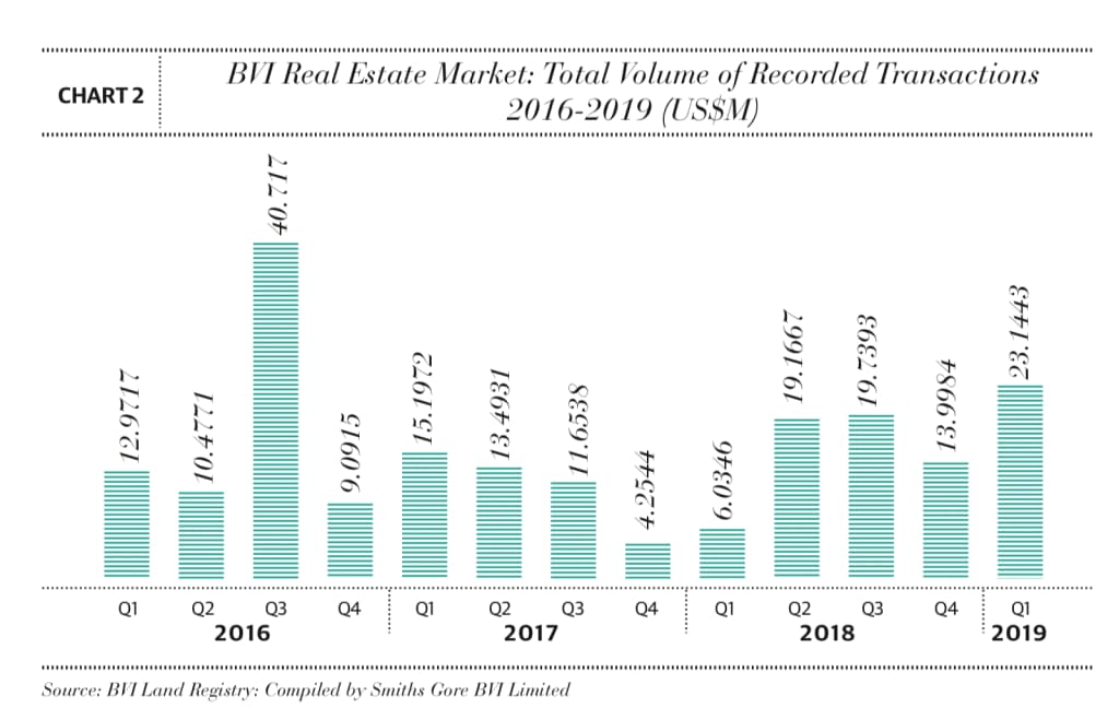 The renewed vigour in the residential market for “as is” property as a result of Irma and continued sales at Oil Nut Bay and Mosquito Island, has resulted in total sales volumes in Q2-Q4 2018 and Q1 2019 exceeding three of the quarterly periods in 2016 and the first three quarters of 2017 (with the exception of Q4 2018 which was slightly lower than Q1 2017).